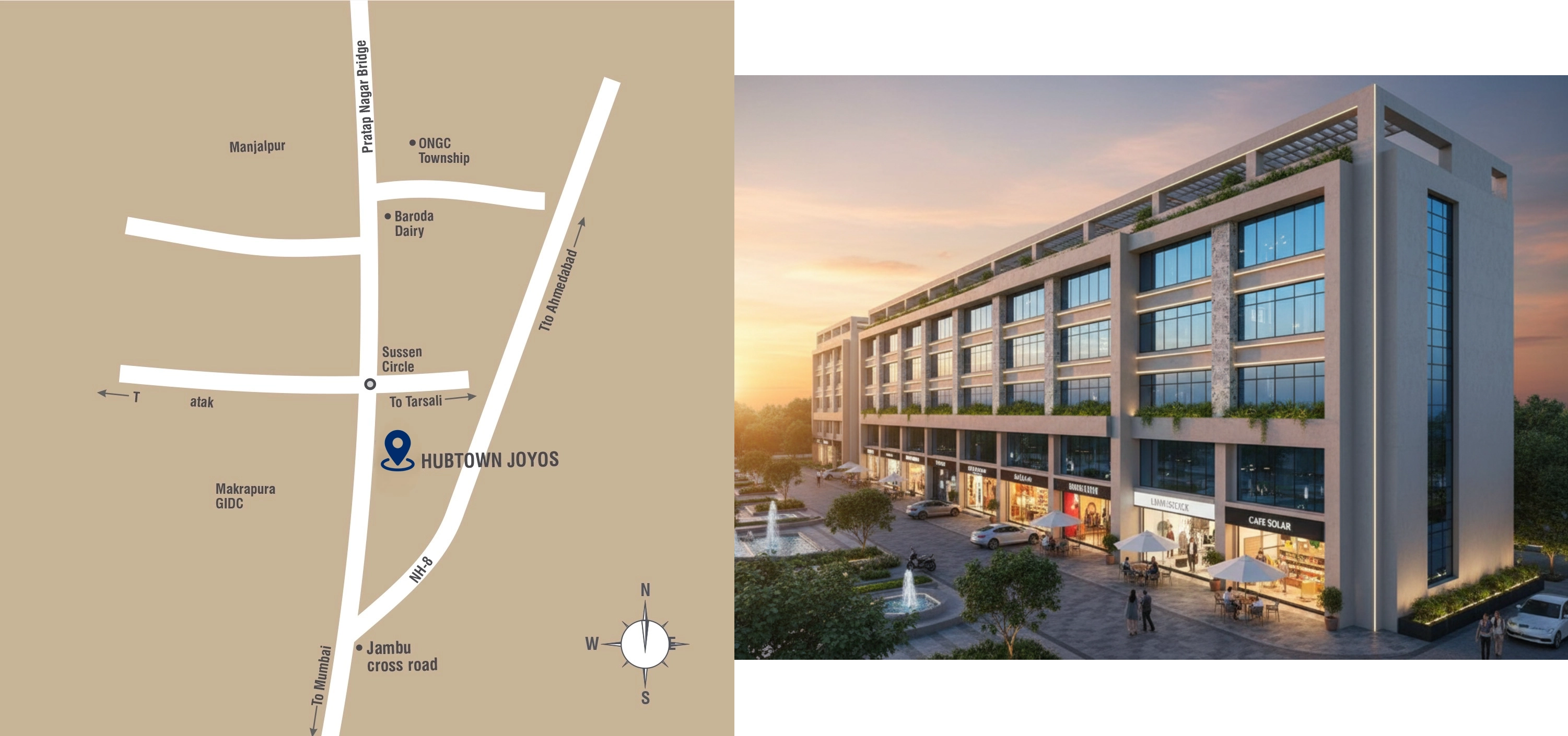 With an expected daily footfall of nearly 50,000 visitors , Hubtown Joyos features a Ground + 4 storey complex encompassing more than 717 customizable units starting from 116 sq. ft. onwards . It has been drafted with grandeur in mind, ensuring traders not only enhance their businesses but also expand their target audiences, thereby achieving soaring profit margins.
